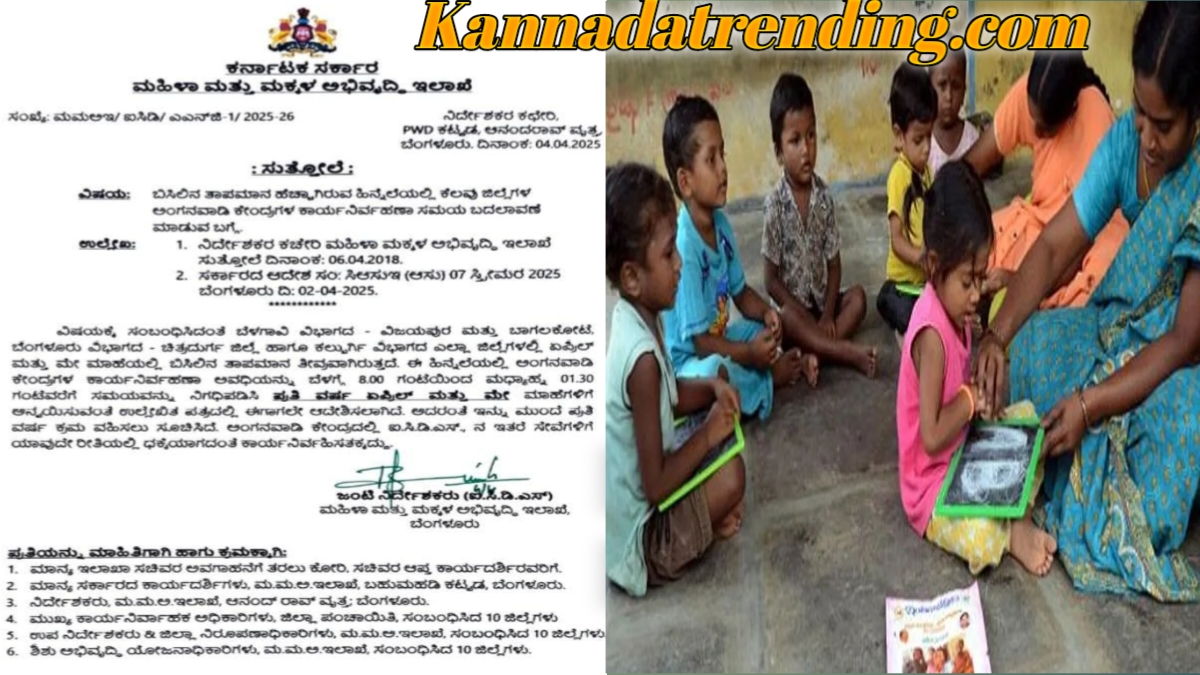 ಕರ್ನಾಟಕ ಬೆಂಗಳೂರು ಏಪ್ರಿಲ್ 7: ಕರ್ನಾಟಕದ ಕೆಲವು ಜಿಲ್ಲೆಗಳಲ್ಲಿ ಬಿಸಿಲಿನ ಬೇಗೆ ಉಗ್ರ ರೂಪ ತಾಳುತ್ತಿದೆ. ಮಹಿಳಾ ಮತ್ತು ಮಕ್ಕಳ ಅಭಿವೃದ್ಧಿ ಇಲಾಖೆ ಸ್ಟೇಟ್ಸ್ ಅಂಗನವಾಡಿ ಕೇಂದ್ರಗಳ ಕಾರ್ಯ ನಿರ್ವಹಣಾ ಅವಧಿಯಲ್ಲಿ ಇದು ತಾತ್ಕಾಲಿಕ ಬದಲಾವಣೆ ಆಗಿದೆ. ಈ ಕ್ರಮವು ಮಕ್ಕಳ ಆರೋಗ್ಯ ಮತ್ತು ಅಭಿವೃದ್ಧಿ ಹಿತದೃಷ್ಟಿಯಿಂದ ಈ ನಿರ್ಧಾರ ಸರ್ಕಾರ ಮಾಡಿದೆ.